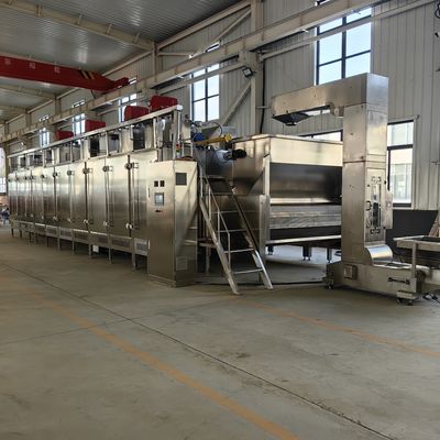 เครื่องคั่วถั่วแบบต่อเนื่องได้รับการออกแบบมาเพื่อตอบสนองความต้องการที่โดดเด่นทั้งหมดที่มีอยู่ในการคั่วผลไม้แห้ง/ถั่ว เครื่องคั่วนี้เหมาะเป็นพิเศษสำหรับผลิตภัณฑ์หลากหลายประเภท เช่น ถั่วลิสง เฮเซลนัท อัลมอนด์ พิสตาชิโอ เม็ดมะม่วงหิมพานต์ เมล็ดทานตะวัน มันเทศ และอื่นๆ โครงสร้างสแตนเลสช่วยให้สามารถแปรรูปผลิตภัณฑ์เปียกและเค็มได้ การคั่วจะดำเนินการโดยกระบวนการบังคับอากาศ และช่วยให้ได้ผลิตภัณฑ์ธรรมดาและเป็นเนื้อเดียวกัน เครื่องคั่วแบ่งออกเป็นสามส่วนที่แตกต่างกัน รวมถึงส่วนการป้อน ส่วนการคั่ว และส่วนการทำความเย็น