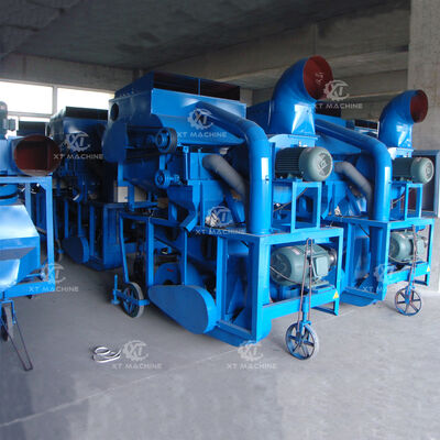 หลังจากกะเทาะแล้ว ถั่วลิสงจะผ่านตะแกรงขนาดใหญ่ก่อน เปลือกที่เบากว่าจะถูกเป่าออกไป ในขณะที่เมล็ดที่เล็กกว่าจะถูกร่อนและรวบรวมเพื่อทำการกะเทาะซ้ำ จากนั้น เปลือกถั่วลิสงและเมล็ดจะถูกเป่าออกไปด้วยพัดลมหมุน โดยที่เปลือกที่เบากว่าจะถูกเป่าออกจากเครื่อง ในที่สุด เมล็ดถั่วลิสงจะถูกจัดเกรดด้วยตะแกรงสั่น พื้นผิวการคัดแยกจะลดลง จากนั้นถั่วลิสงจะไหลผ่านช่องทางเข้ากลับเข้าไปในอุปกรณ์ยก ซึ่งจะถูกยกขึ้นด้วยลมไปยังดรัมด้านหลัง ถั่วลิสงที่กะเทาะแล้วและเปลือกจะตกลงไปในตะแกรงรูปโค้งด้านหลัง ซึ่งพัดลมจะทำการคัดแยกซ้ำ ตะแกรงคัดแยกแรงโน้มถ่วงจะกรองถั่วลิสงที่มีคุณสมบัติเหมาะสมเพิ่มเติม เพื่อให้แน่ใจว่าถั่วลิสงทั้งหมดถูกกะเทาะ