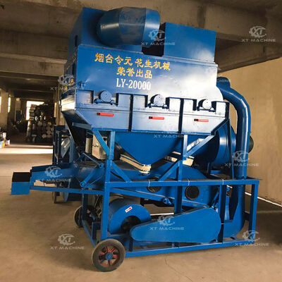 After shelling, the peanuts first pass through a large screen; lighter shells are blown away, while smaller kernels are sieved and collected for secondary shelling. Then, the peanut shells and kernels are blown away by a rotating fan, with lighter shells being blown out of the machine. Finally, the peanut kernels are graded by a vibrating screen. The sorting surface then descends, and the peanuts flow through a return inlet into an lifting device, where they are pneumatically lifted to the rear drum. The shelled peanuts and shells fall into a rear arc-shaped screen, where a fan performs secondary sorting. A gravity sorting screen further filters out qualified peanuts, ensuring all peanuts are shelled.